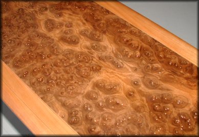 made of solid cherry and a walnut burl veneer top has been accentuated