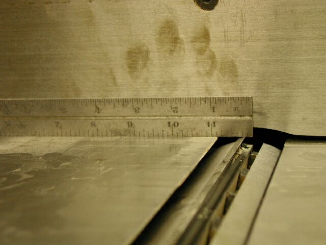 1/16". Then place a flat, steel ruler on the outfeed table