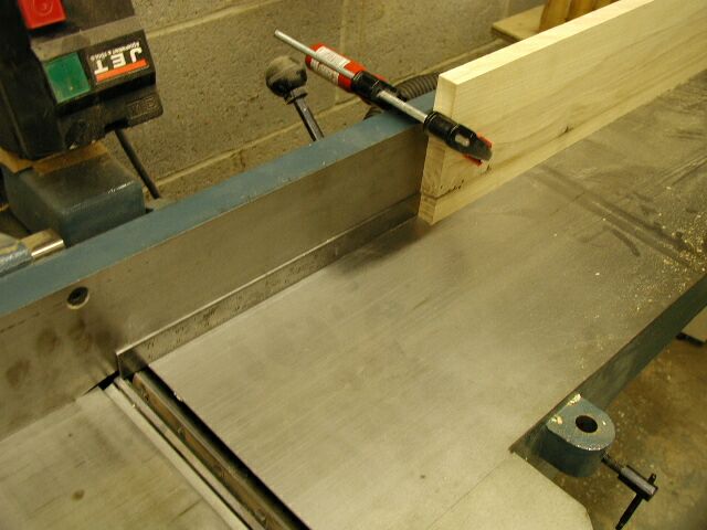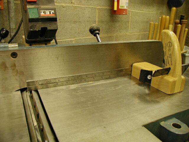 place it against the fence on the infeed table of the jointer (photo