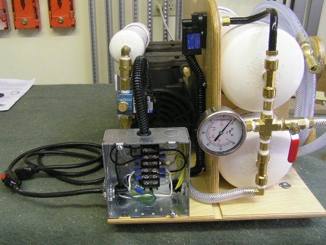 Jim Ludi of Denver, Colorado incorporated a "continuous run" bypass switch into his Project: EVS kit with rebuilt Thomas vacuum pump. Like many others, this system is a sight to behold. |