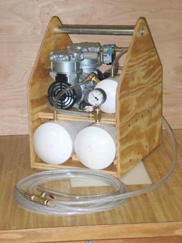 Here is the work of Howard Wilmot from Ladson South, Carolina. Another excellent system using a Thomas vacuum pump and a double resevoir. |