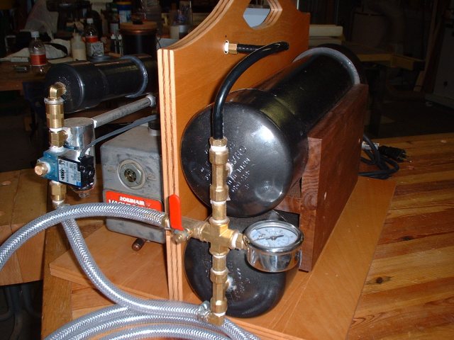 Steve Spurgin from Greenwood, Indiana used a $15.00 air tank from Menards and tee'd in an extra vacuum line and a foot pedal-operated vacuum clamping jig.